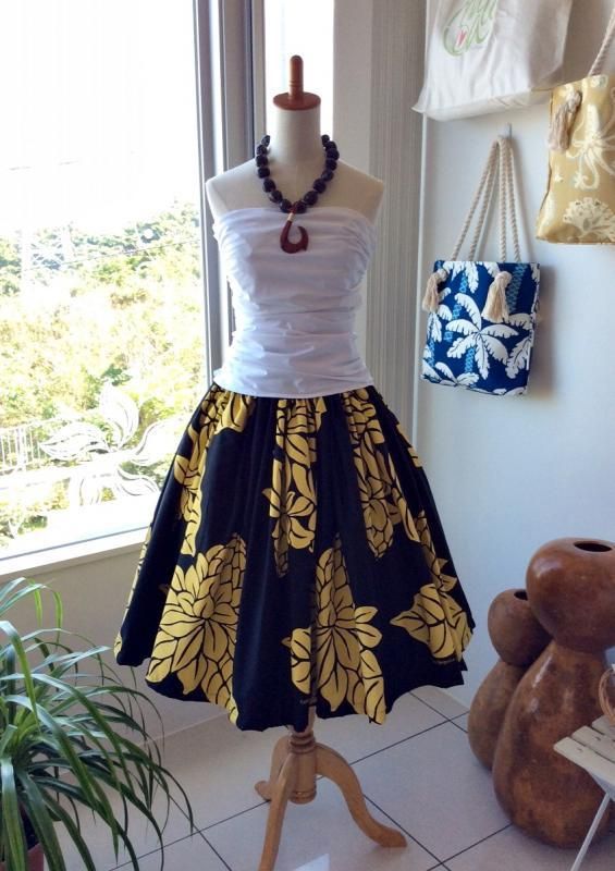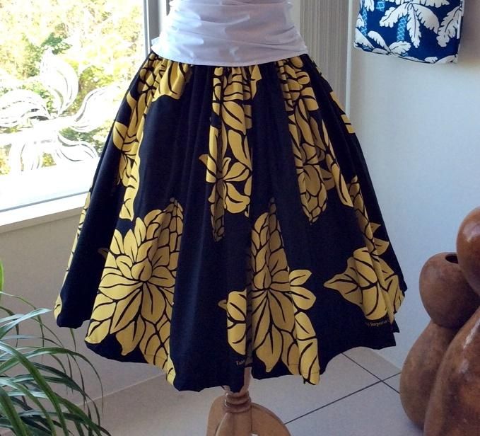 TOP > 【既成】 タヒチインポーツ シングルパウ Black & Yellow トーチジンジャー柄 ウエストゴム4本 丈75cm 【送料無料】