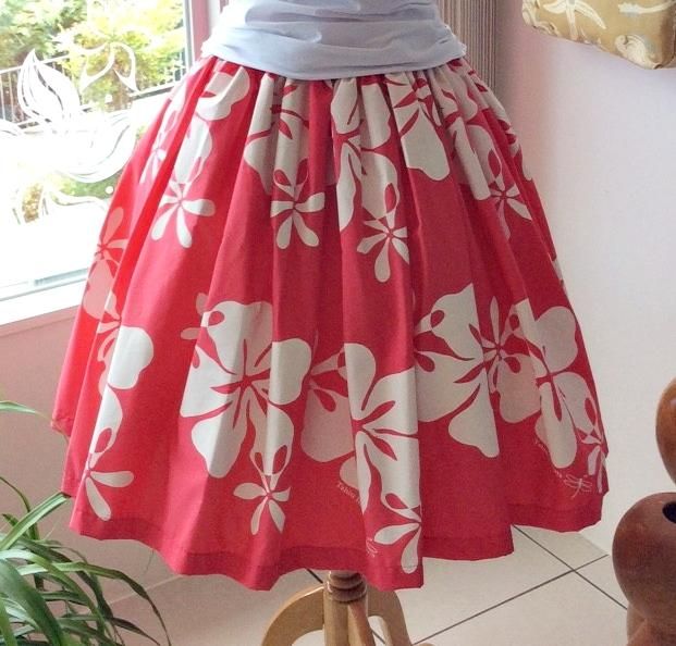 TOP > 【既成】 タヒチインポーツ シングルパウ サーモンピンク ハイビスカス柄 ウエストゴム4本 丈75cm 【送料無料】