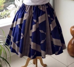 TOP > 【既成】 タヒチインポーツ シングルパウ ネイビー・ベージュ・タパ柄 ウエストゴム4本 丈75cm 【送料無料】