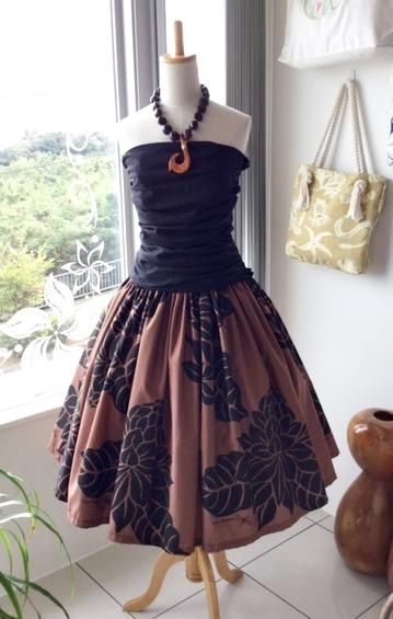 TOP > 【既成】 タヒチインポーツ シングルパウ ブラウン トーチジンジャー柄 ウエストゴム4本 丈75cm 【送料無料】
