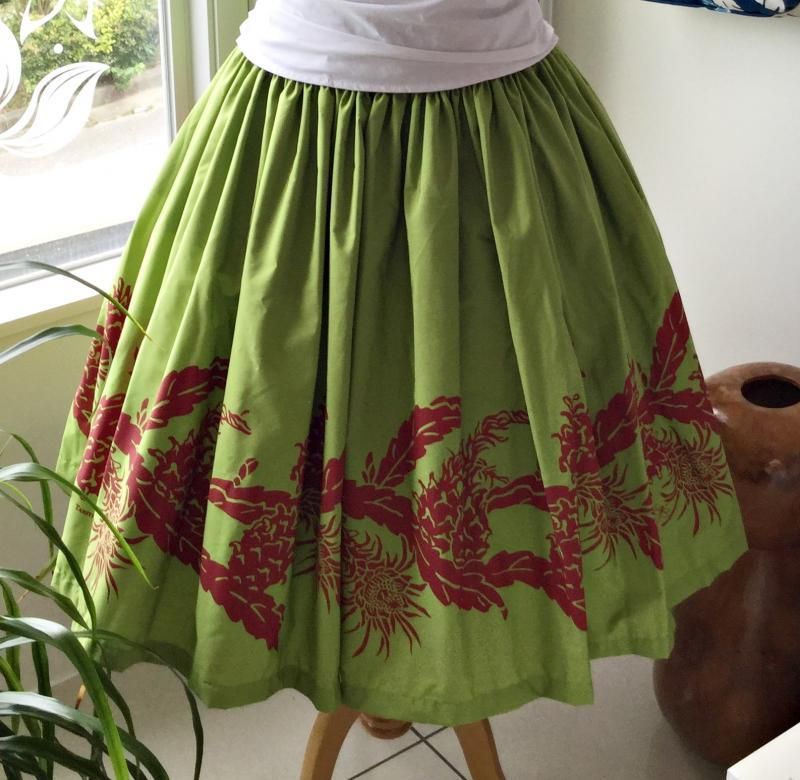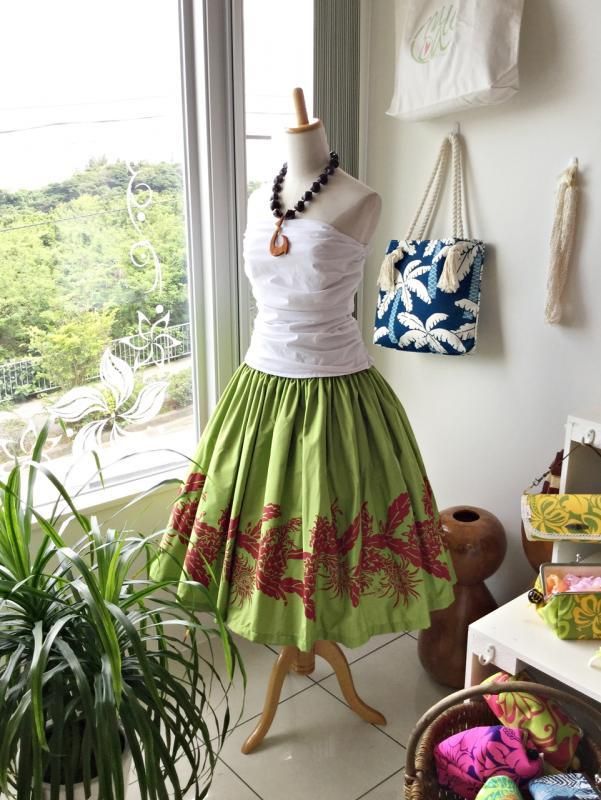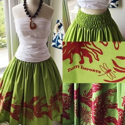 TOP > 【既成】 タヒチインポーツ シングルパウスカート ライム色 ドラゴンフルーツ柄 ウエストゴム4本 丈75cm 【送料無料】