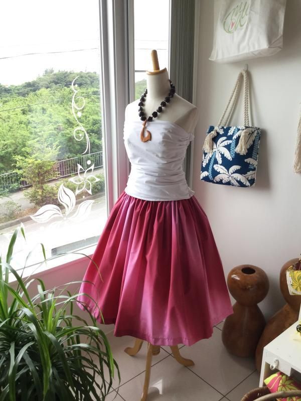 TOP > Pink Lei シングルパウ ダークピンク斜めグラデーション ウエストゴム4本 丈73cm