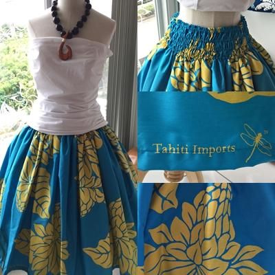 TOP > ☆希望スカート丈にて作成! タヒチインポーツ シングルパウ ターコイズ&レモン トーチジンジャー柄 【送料無料】