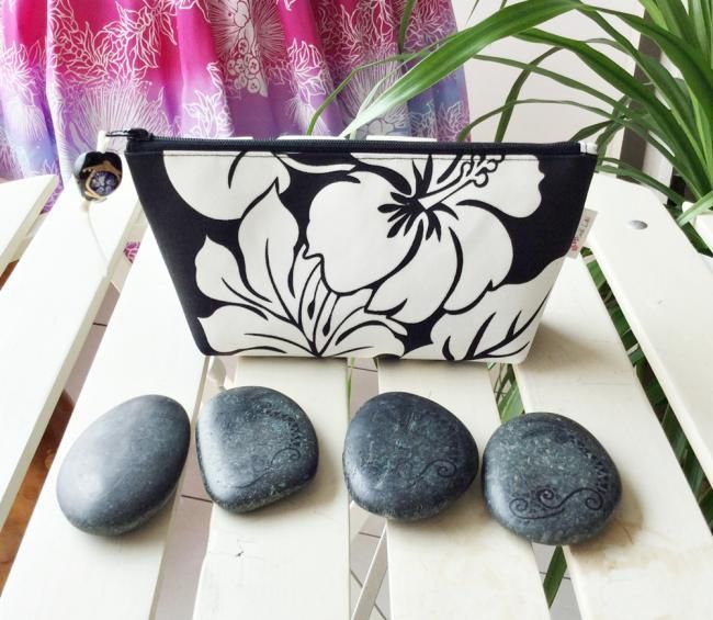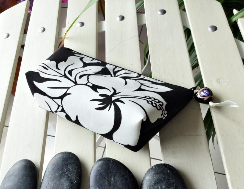 Pink Lei オリジナル【1点もの】 イリイリケース 黒・ハイビスカス柄
