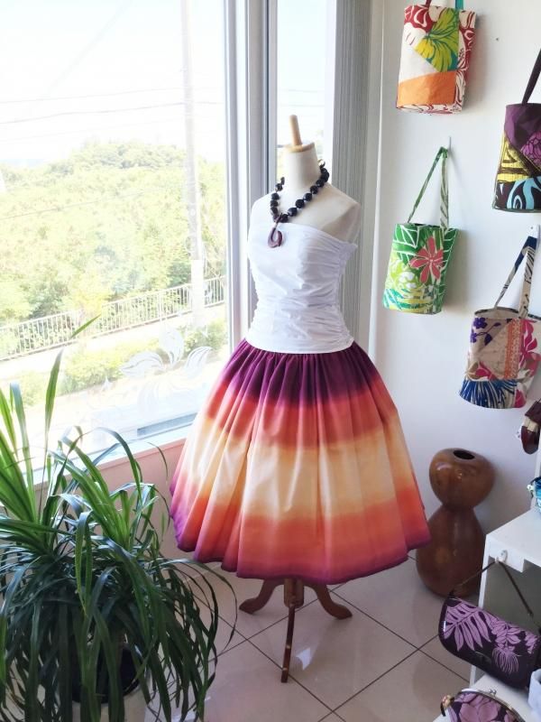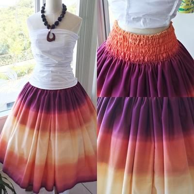 TOP > Pink Lei シングルパウ オレンジ&ワイングラデーションボーダー柄 ウエストゴム4本 丈73cm