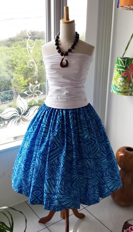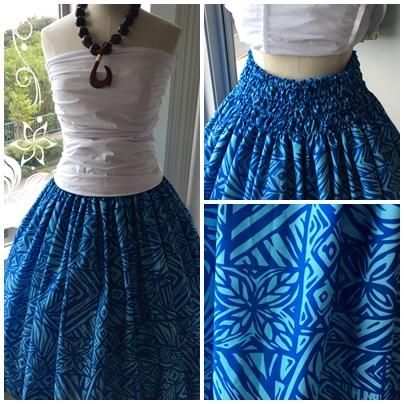 TOP > Pink Lei シングルパウ スカイブルー・古典柄 ウエストゴム4本 丈73cm
