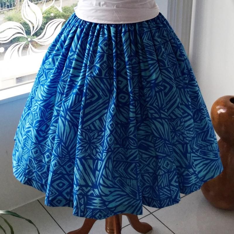 Pink Lei シングルパウ スカイブルー・古典柄 ウエストゴム4本 丈73cm
