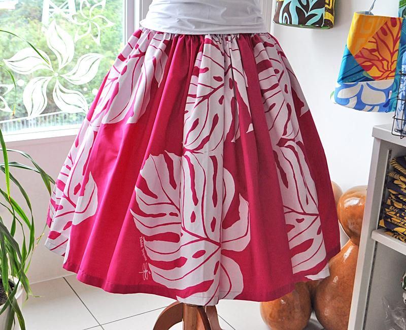 Pink Leiでは、タヒチインポーツの生地を使って、丁寧にパウスカートを制作しています。(Textile Designed in Hawaii/Skirts made in Okinawa.)