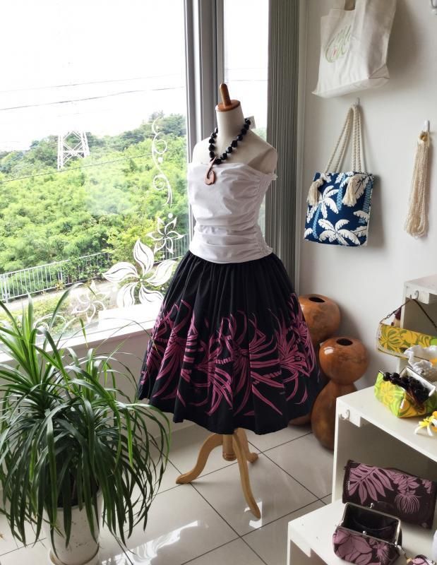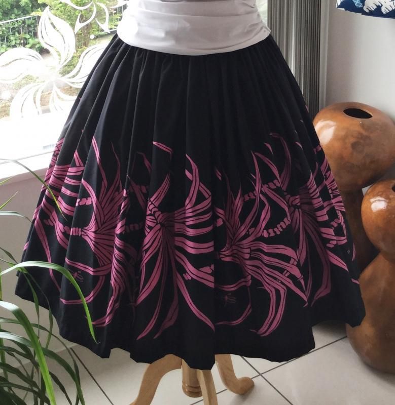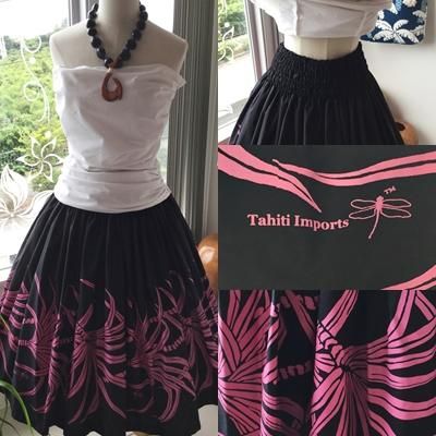 ☆希望スカート丈にて作成! タヒチインポーツ シングルパウ ブラック&ホットピンク ラウアエ柄【送料無料】