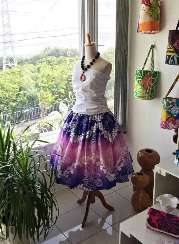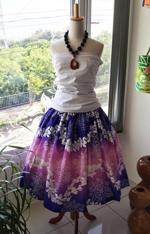 TOP > Pink Lei シングルパウ パープルグラデーション レイ柄 ウエストゴム4本 丈73cm