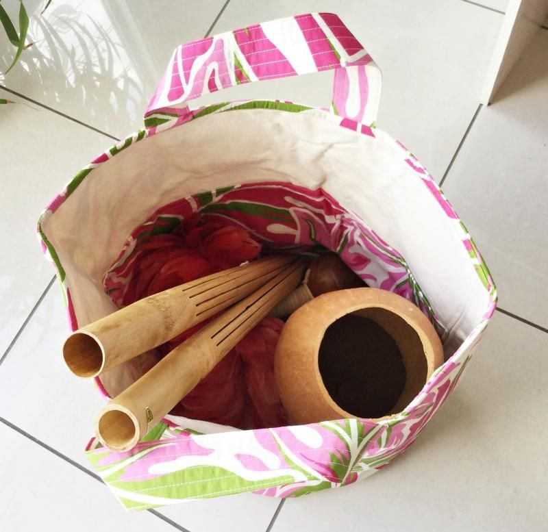 TOP > 〜New Item〜 バケツ型バッグ(L)・お稽古バッグ ピンク・ラウアエ(シダ)柄【1点もの】