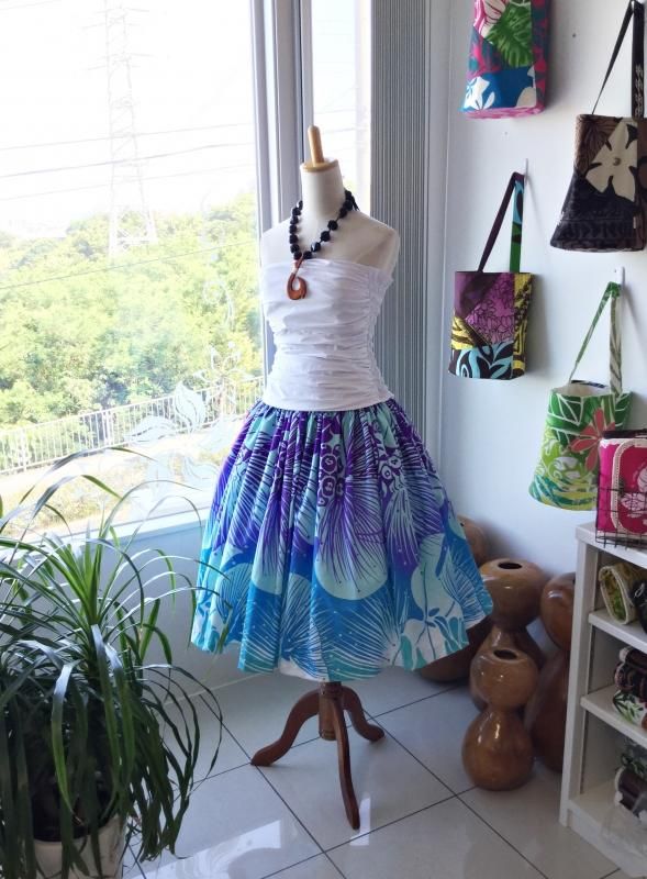 TOP > Pink Lei シングルパウ ブルーパープル・レフア柄 ウエストゴム4本 丈73cm