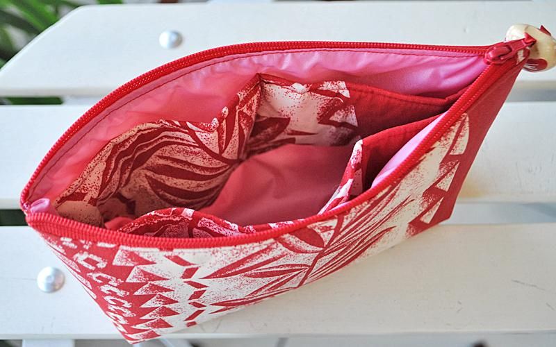 中がしっかり仕切られているので、メイクアップ用品を収納するポーチとしても使用できます。