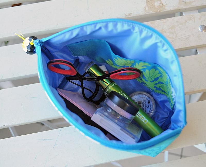 シェル型ファスナーポーチ ブルー・キルト柄