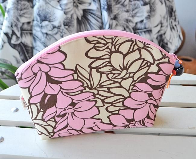 Pink Lei オリジナル【1点もの】 シェル型ファスナーポーチ ピンクベージュ・レイ柄