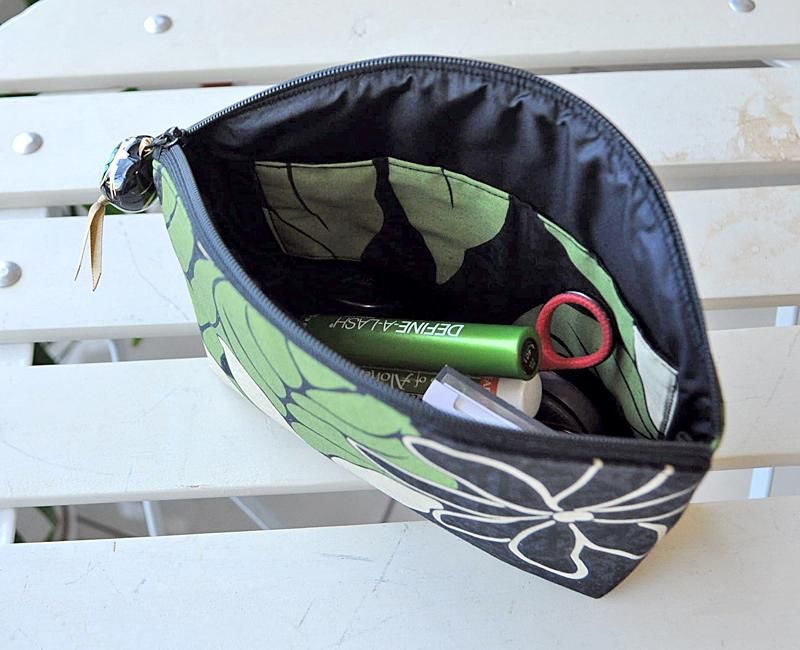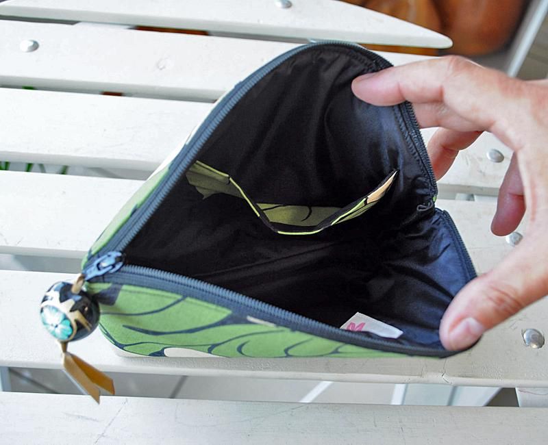 TOP > Pink Lei オリジナル【1点もの】 シェル型ファスナーポーチ ベージュ&グリーン・ティアレ柄