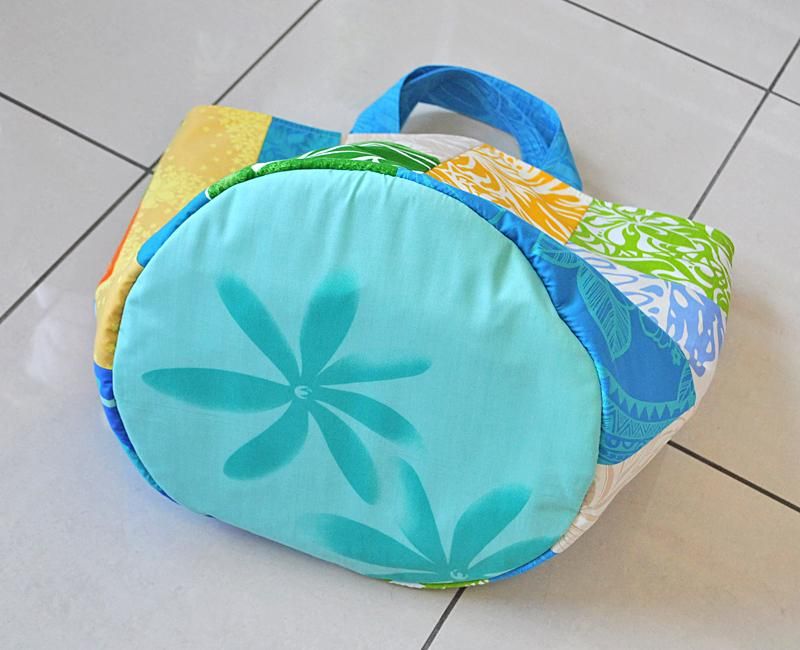 どのアングルから見ても飽きのこないバケツ型で、ハワイアンファブリック独特のカラフルな色合いが素敵な一品。中身の見えない巾着タイプのため、持ち運びに便利です。