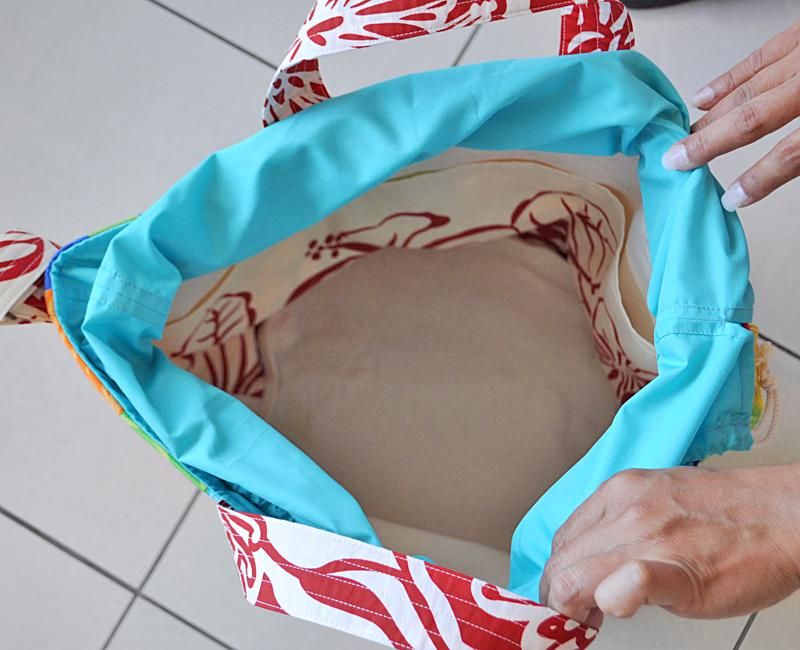 どのアングルから見ても飽きのこないバケツ型で、ハワイアンファブリック独特のカラフルな色合いが素敵な一品。