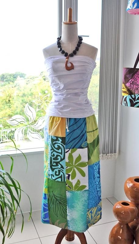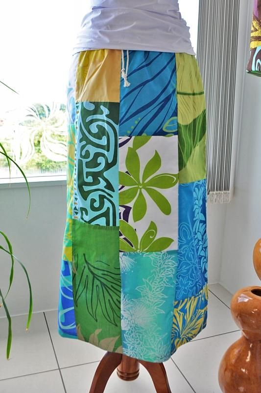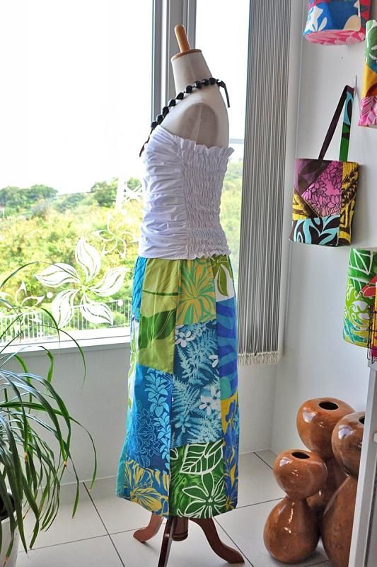 TOP > 【1点もの】 Pink Lei オリジナル/パッチドレス タイトロング ブルー&グリーン#2【送料無料】