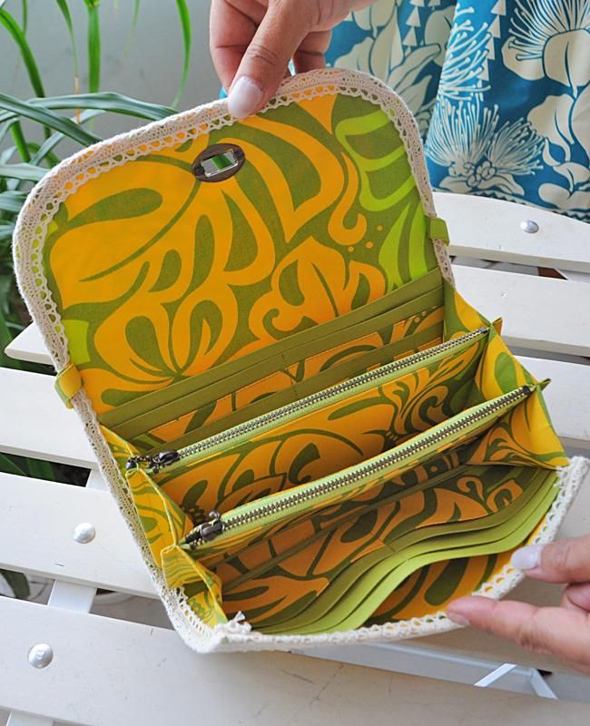 TOP > Pink Lei 【1点もの】スマホも入るお財布ポーチ(S)(イエロー&グリーン・ハイビスカス柄)