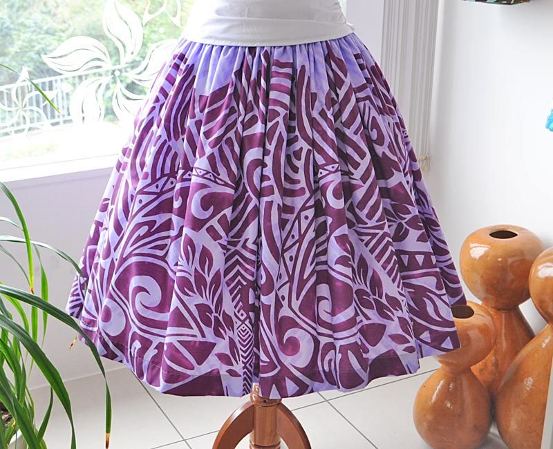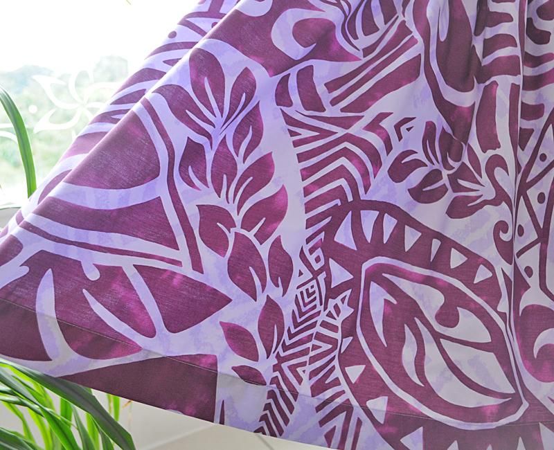 TOP > Pink Lei シングルパウ ラベンダー&パープル・タパ(古典)柄 ウエストゴム4本 丈73cm