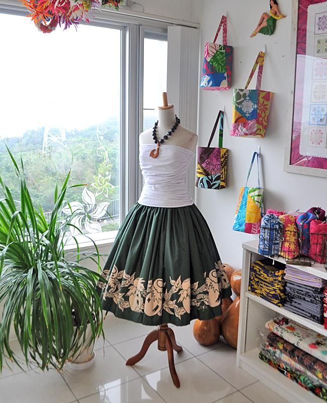 TOP > ☆希望スカート丈にて作成! タヒチインポーツ シングルパウ グリーン&ベージュ イプヘケ&イリマレイ柄【送料無料】