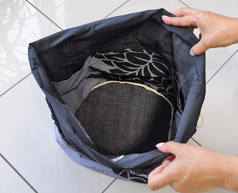 TOP > 〜新商品〜 バケツバッグ・巾着タイプ (L) グレー&ブラック トーチジンジャー柄【1点もの】