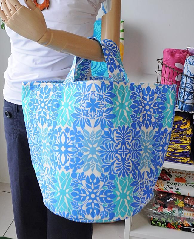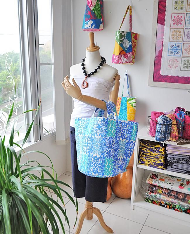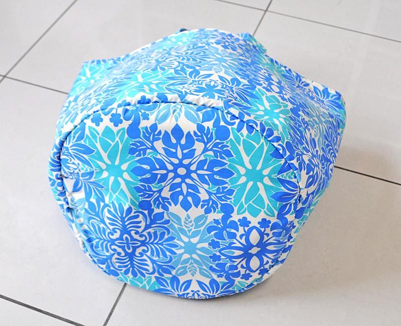 どのアングルから見ても飽きのこないキュートな形と、ハワイアンファブリック特有の華やかな柄が目を引くデザイン。