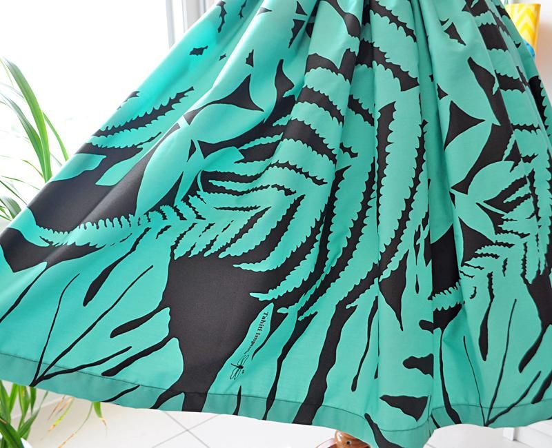 ☆希望スカート丈にて作成! タヒチインポーツ シングルパウ ブラック&ミントグリーン トロピカルリーフ柄【送料無料】