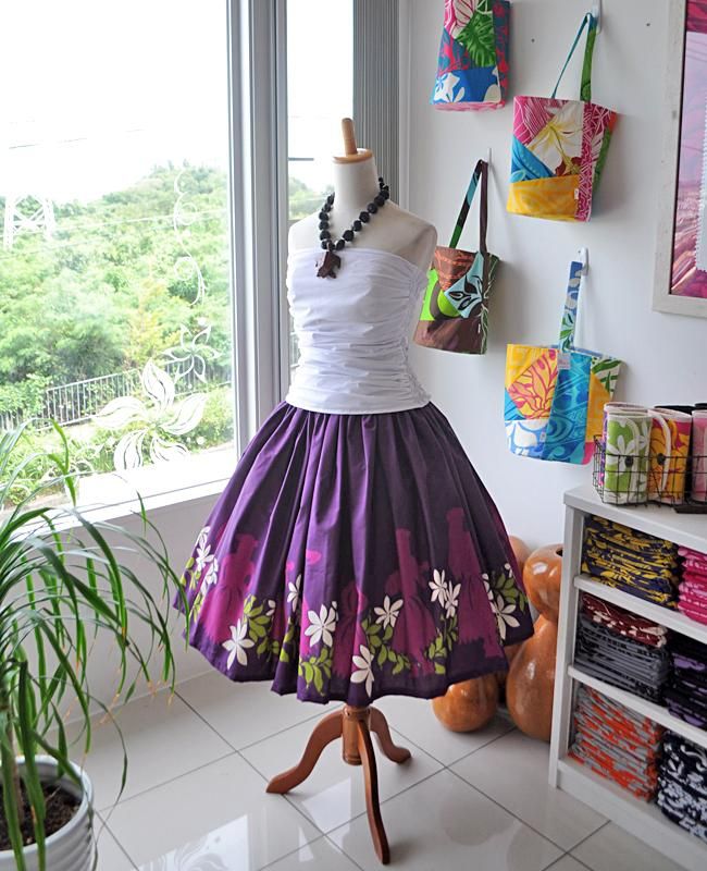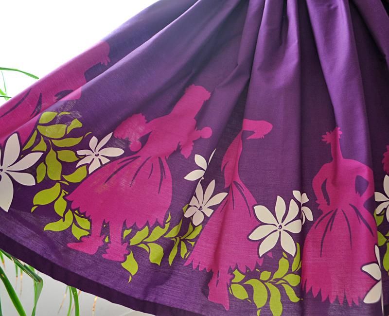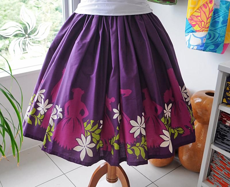 TOP > Pink Lei シングルパウ パープル・フラガール柄 ウエストゴム4本 丈73cm