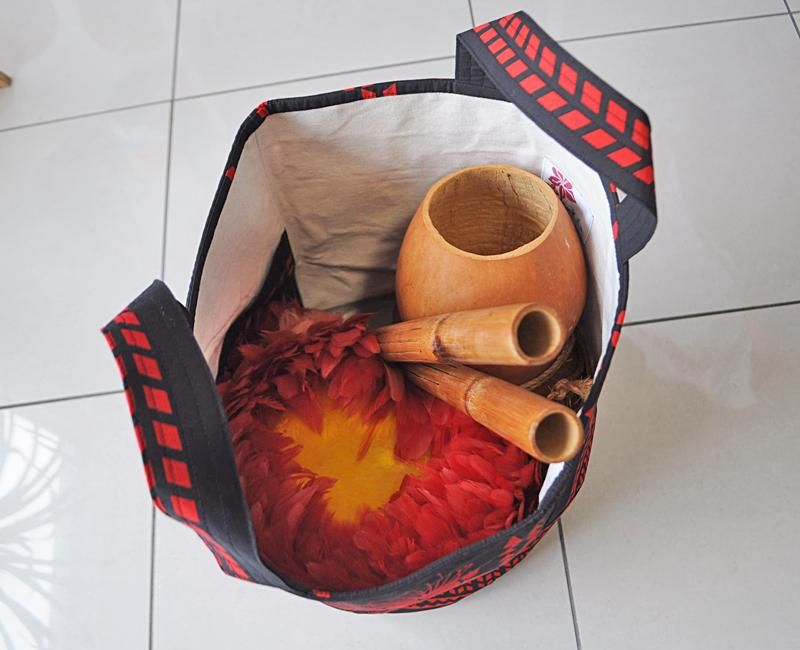 どのアングルから見ても飽きのこないキュートな形と、ハワイアンファブリック特有の華やかな柄が目を引くデザイン。