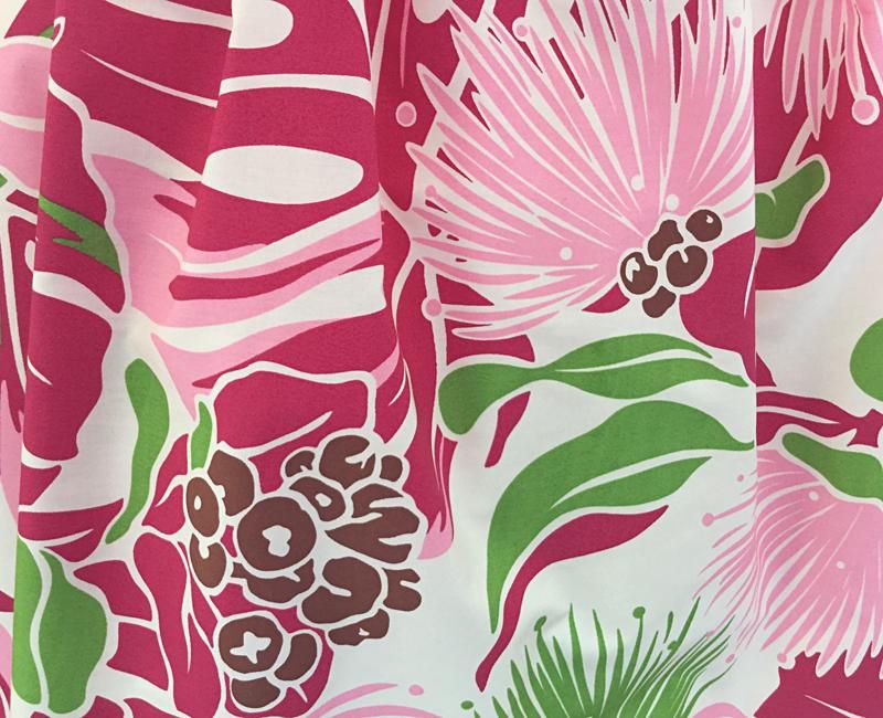 TOP > Pink Lei シングルパウ ピンクベース・トロピカルフラワー柄 ウエストゴム4本 丈73cm