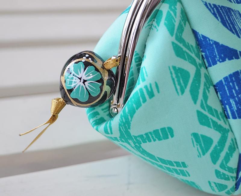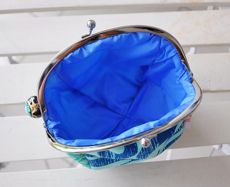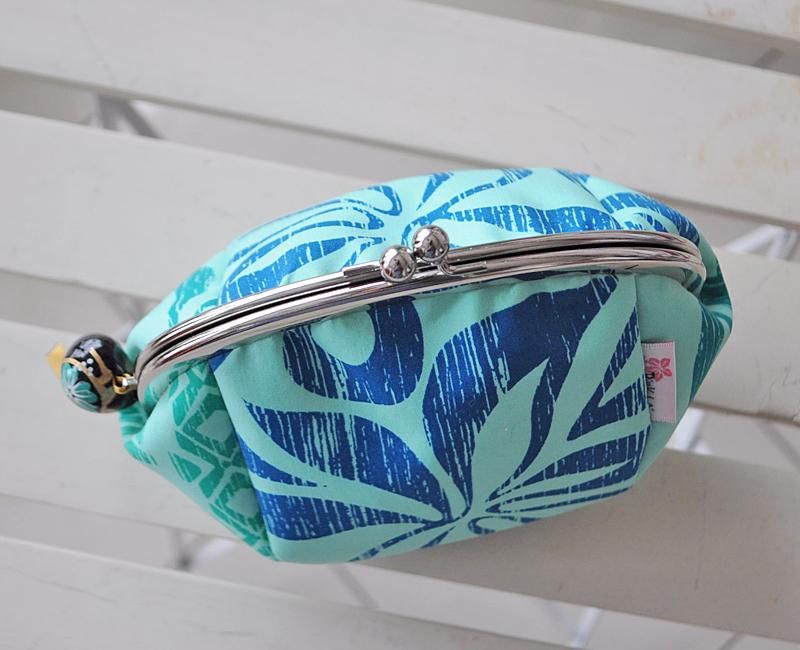 がま口タイプのコロコロポーチ エメラルドグリーン&ブルー