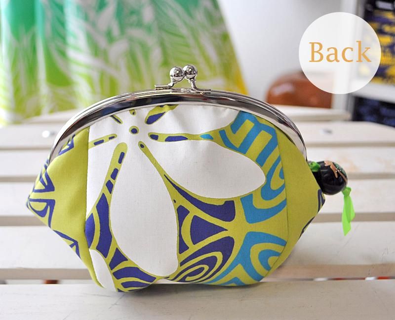 Pink Lei オリジナル【1点もの】 コロコロポーチ オリーブ&ホワイト・ティアレ柄