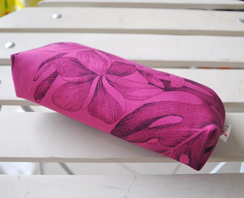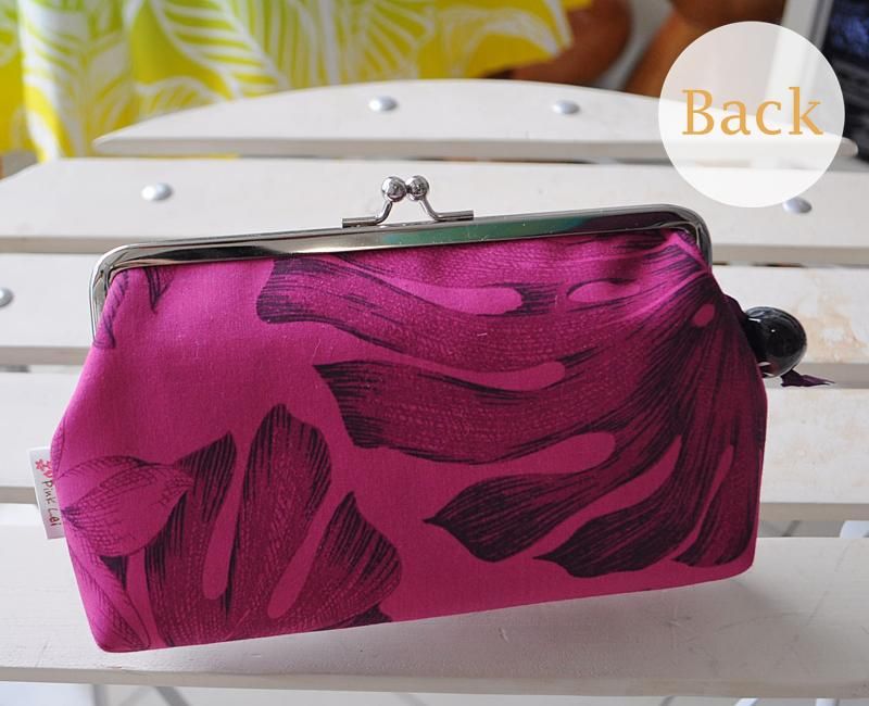 TOP > Pink Lei オリジナル【1点もの】 がま口・通帳ケース ホットピンク・プルメリア&モンステラ柄