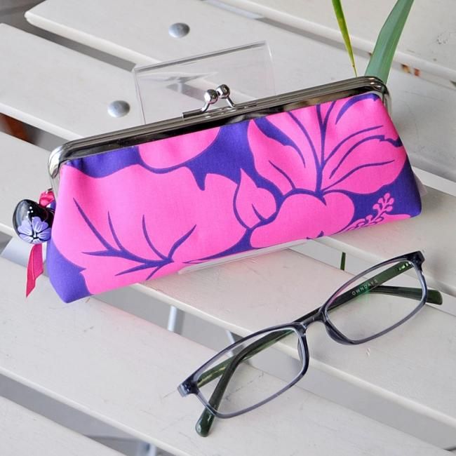 TOP > Pink Lei オリジナル【1点もの】 がま口・サングラスケース パープル&ピンク・ハイビスカス柄