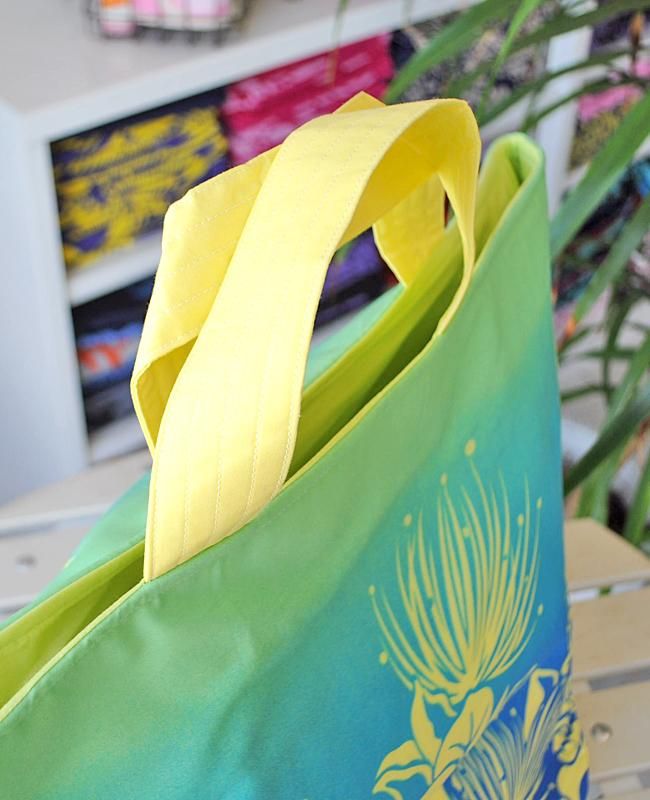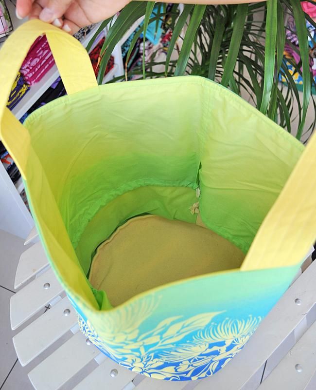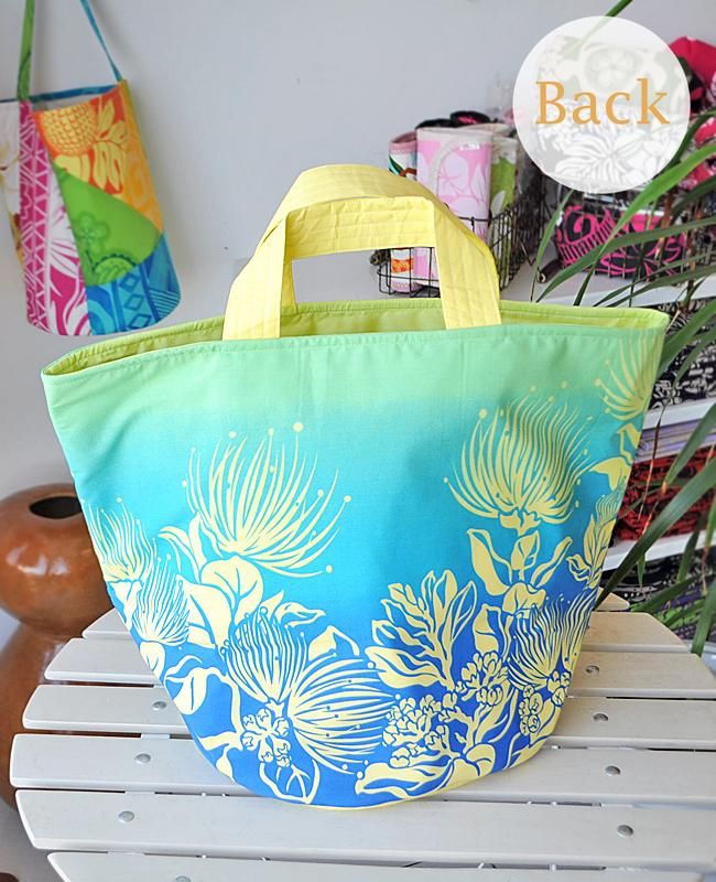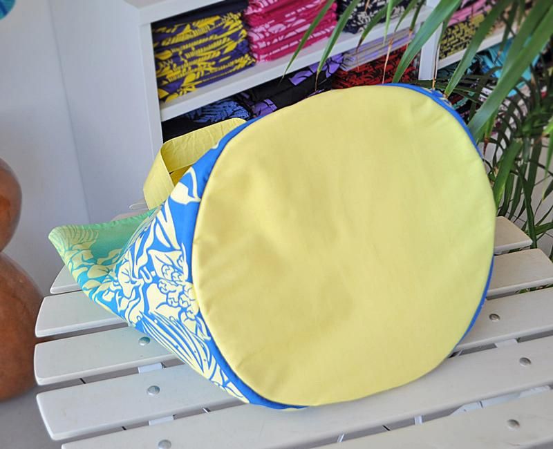 TOP > Pink Lei【新商品】バケツ型バッグ (L)・巾着付き レモンイエロー〜ブルーグラデーション/レフア柄