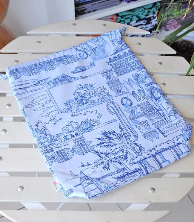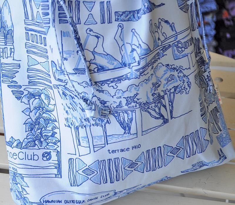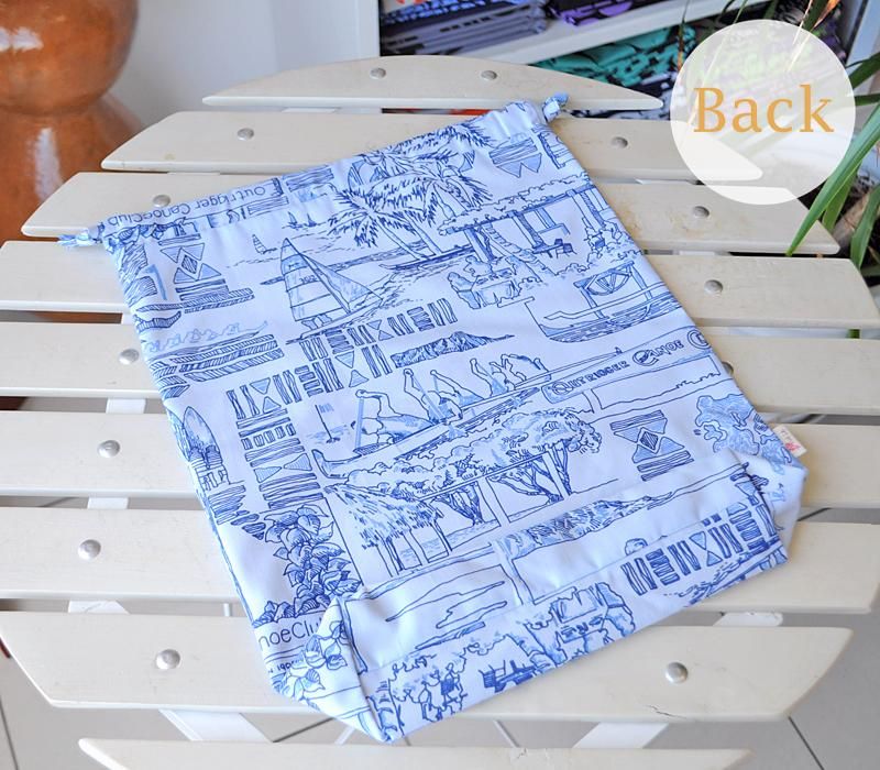 Pink Lei オリジナル 〜新商品〜 巾着袋 ライトブルー/カヌークラブ柄【1点もの】