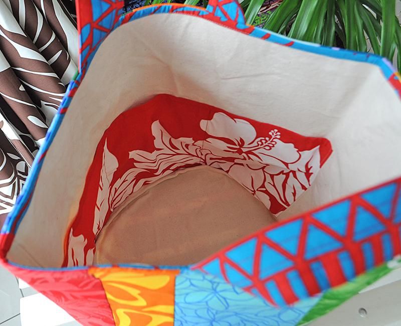 【素 材】ハワイアンファブリック・ポリエステル65%・綿35%,8号帆布,芯地使用