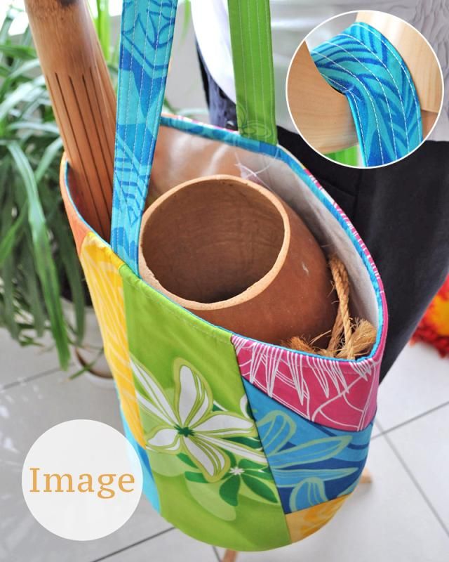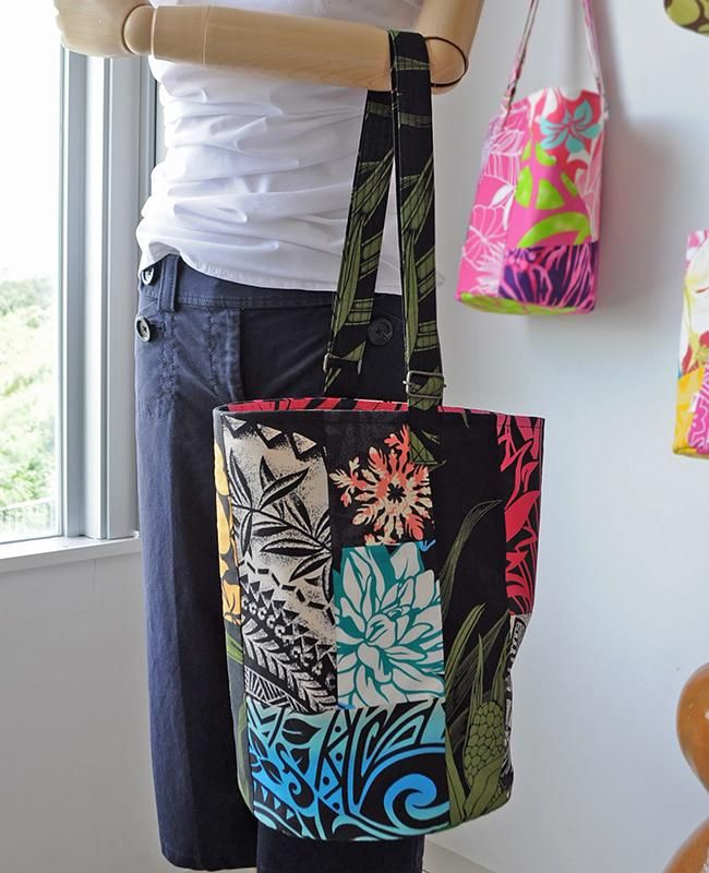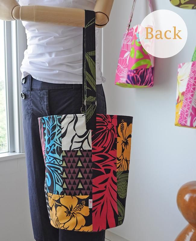 沖縄のキルト作家さんとコラボして出来上がったハワイアンパッチ・アジャスター付きバケツ型バッグ(Sサイズ)です。
