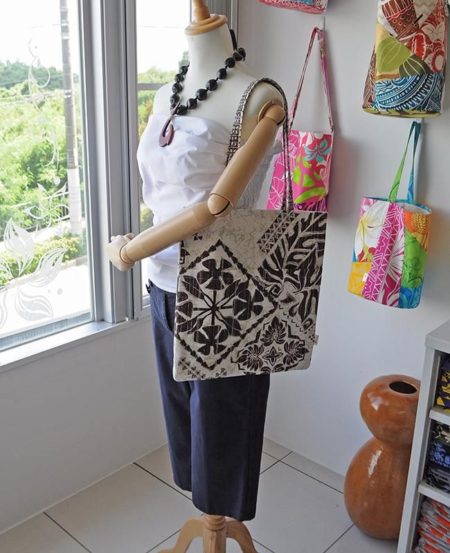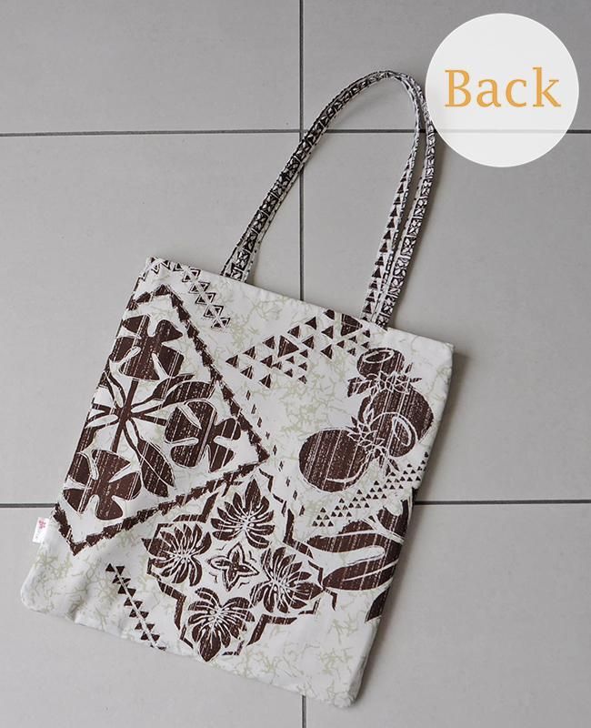 TOP > A4ハワイアントートバッグ(帆布/マグネットなし) ホワイト&ブラウン・ハワイアンキルト柄【1点もの】