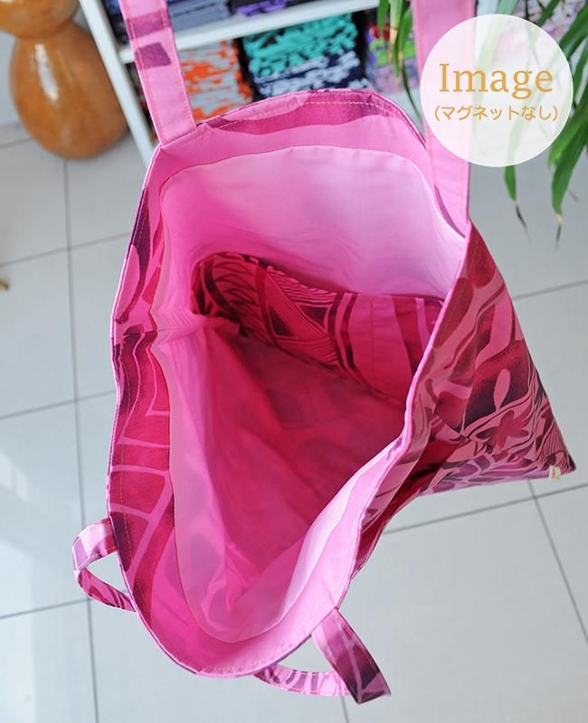 ハワイから直接仕入れたファブリックを使用した使いやすい"A4トートバッグ(マグネットなし)"です。