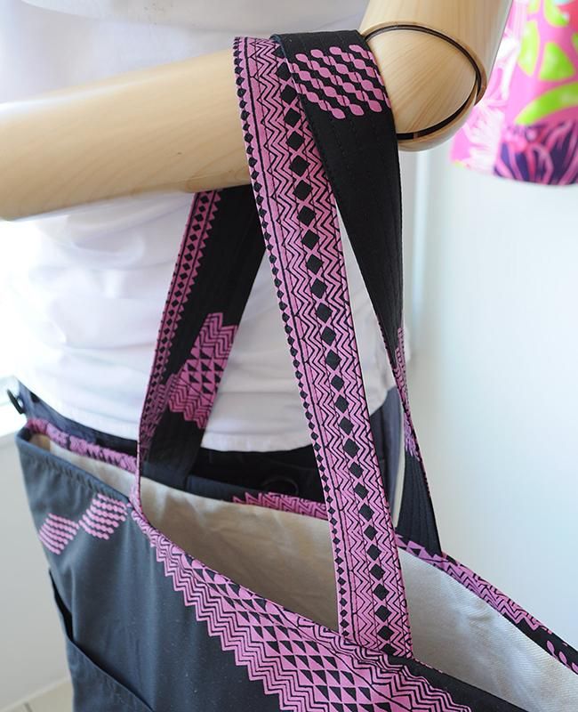 TOP > Pink Lei オリジナル【1点もの】タヒチインポーツ デイリートートバッグ 古典カヒコ柄・ブラック&ピンク