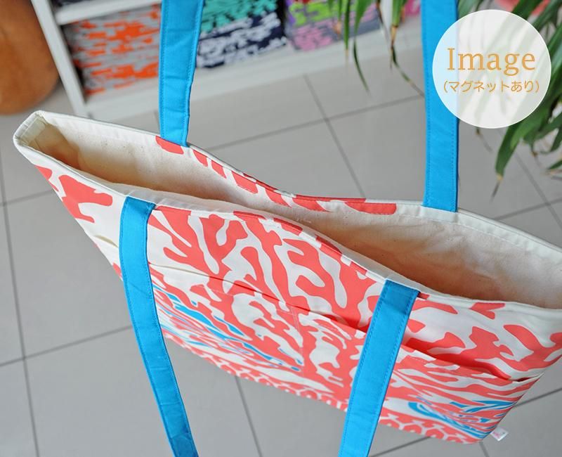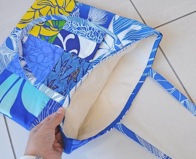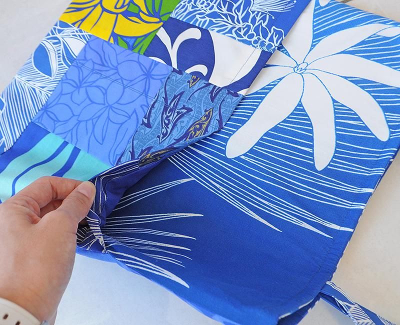 TOP > ハワイアンパッチ・A4ハワイアントートバッグ(帆布/マグネットあり) ブルー【1点もの】