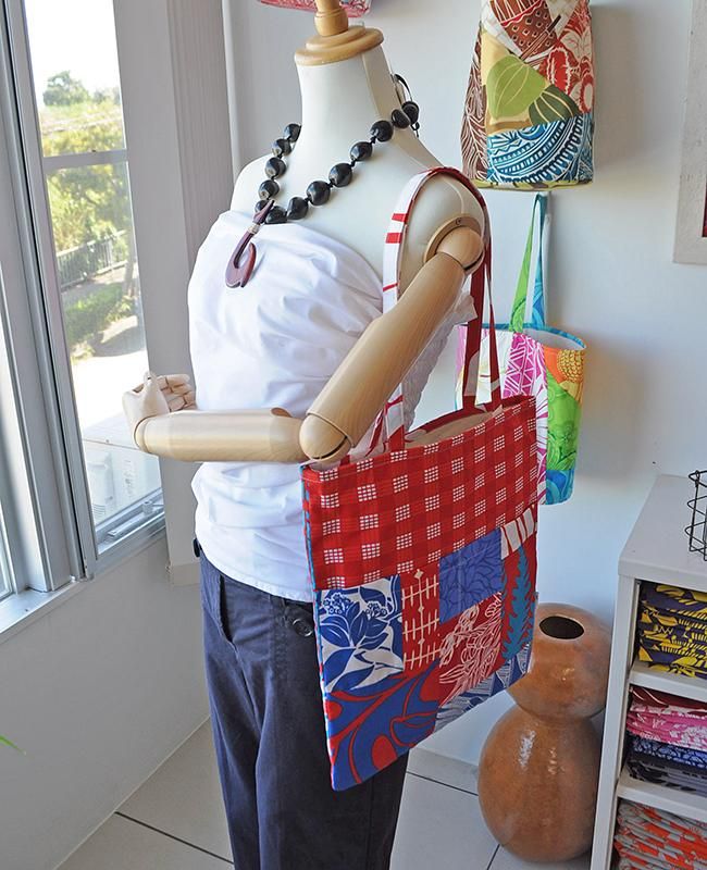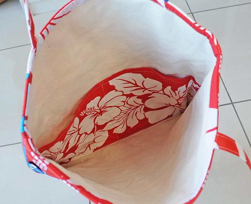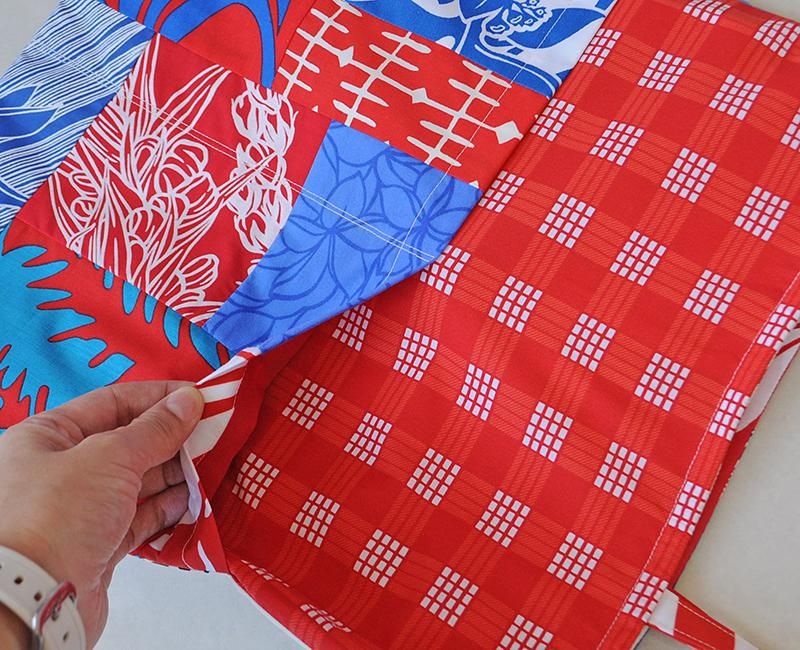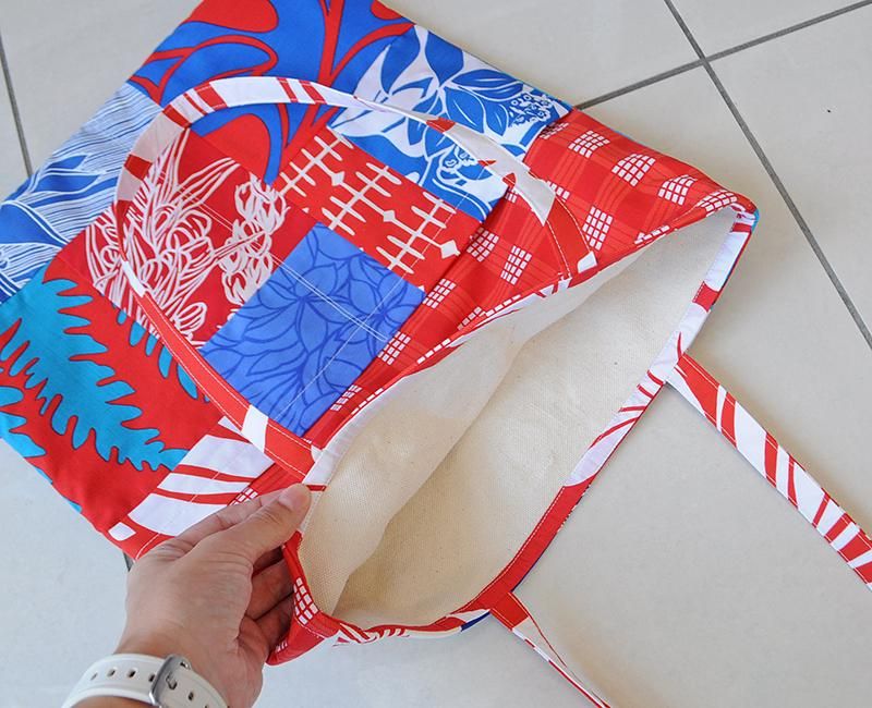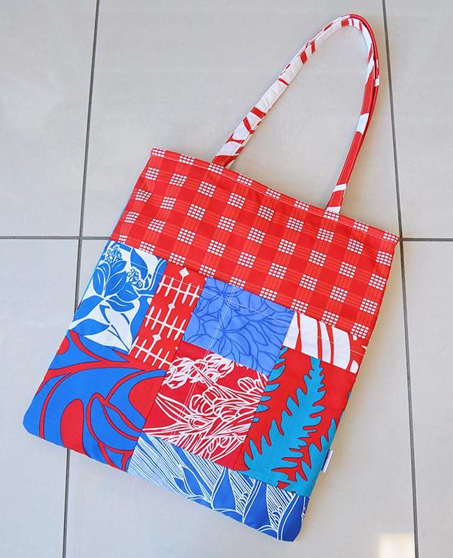 TOP > ハワイアンパッチ・A4ハワイアントートバッグ(帆布/マグネットあり) レッド&ブルー【1点もの】