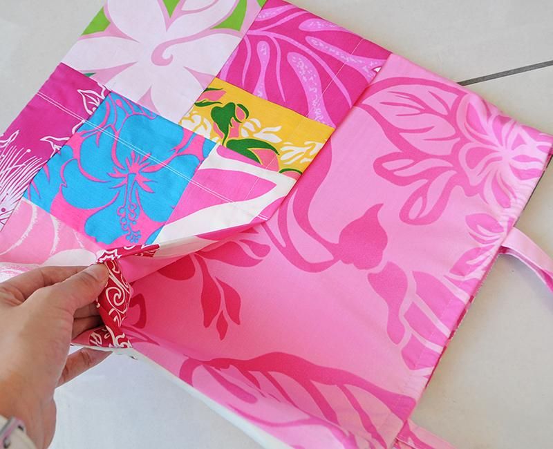 シンプルな作りながら、一枚一枚丁寧にパッチを組み合わせ、色合いや柄の出方など細部にまで考慮して作られたPink Lei オリジナルの一点もの!
