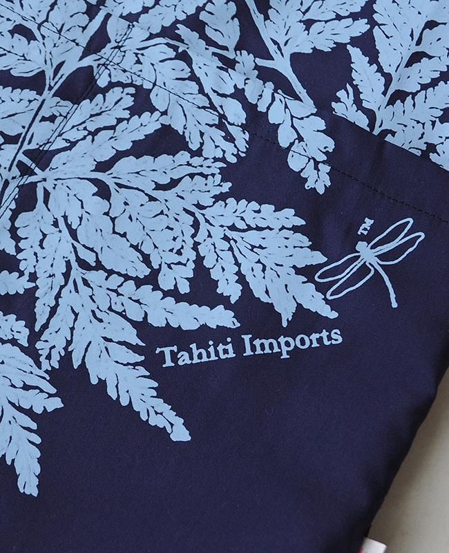 TOP > Pink Lei オリジナル【1点もの】タヒチインポーツ/A4ハワイアントートバッグ(帆布/マグネットあり) ネイビー&ベイビーブルー・ラウアエ(シダ)柄