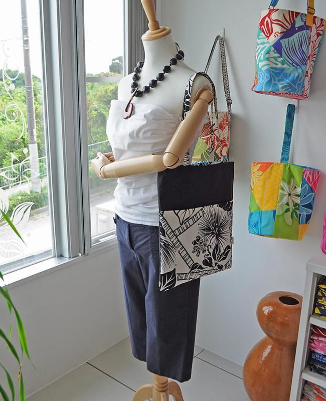 ハワイから直接仕入れたファブリックを使用した使いやすい"A4トートバッグ(マグネットあり)"です。