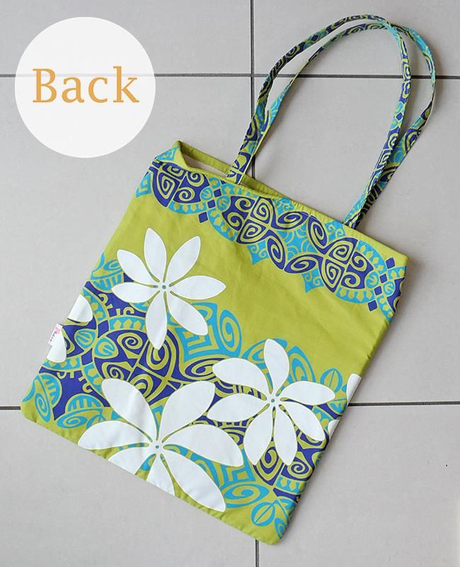 TOP > A4ハワイアントートバッグ(帆布/マグネットあり) オリーブ&ホワイト&ブルー・ティアレ柄 #2【1点もの】