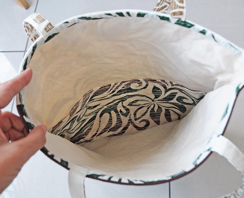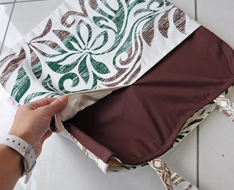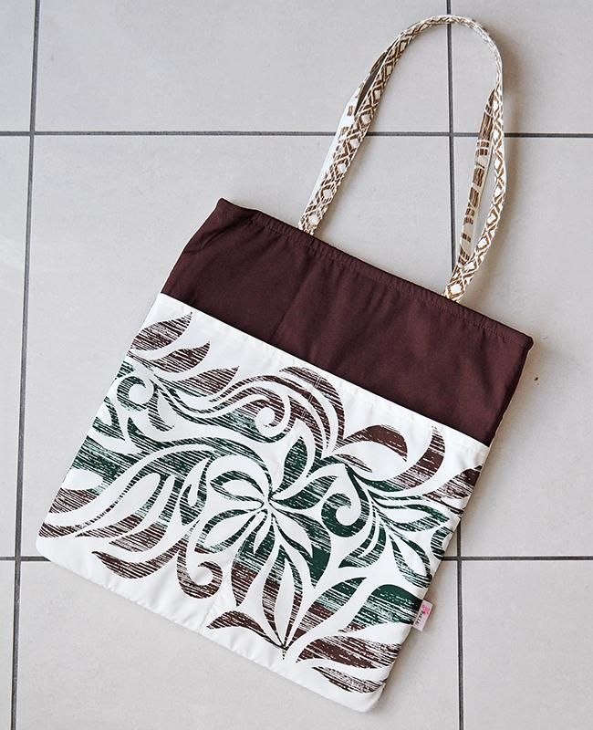 TOP > A4ハワイアントートバッグ(帆布/マグネットあり) ホワイト&ブラウン・トライバル柄【1点もの】